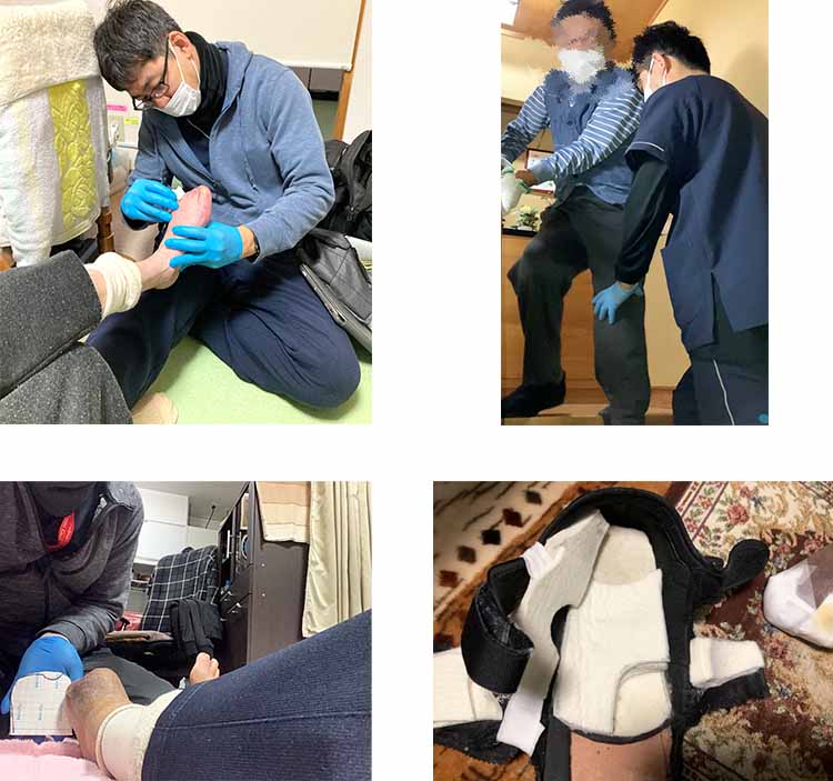 医師や義肢装具士と密に連携し、適切なデバイスを活用しながら、患者様が安心して日常生活を送れるようサポートしています。創傷治癒後には、再発予防のための生活指導を含め、患者様お一人おひとりが在宅生活を継続できるよう、丁寧に支援しています。